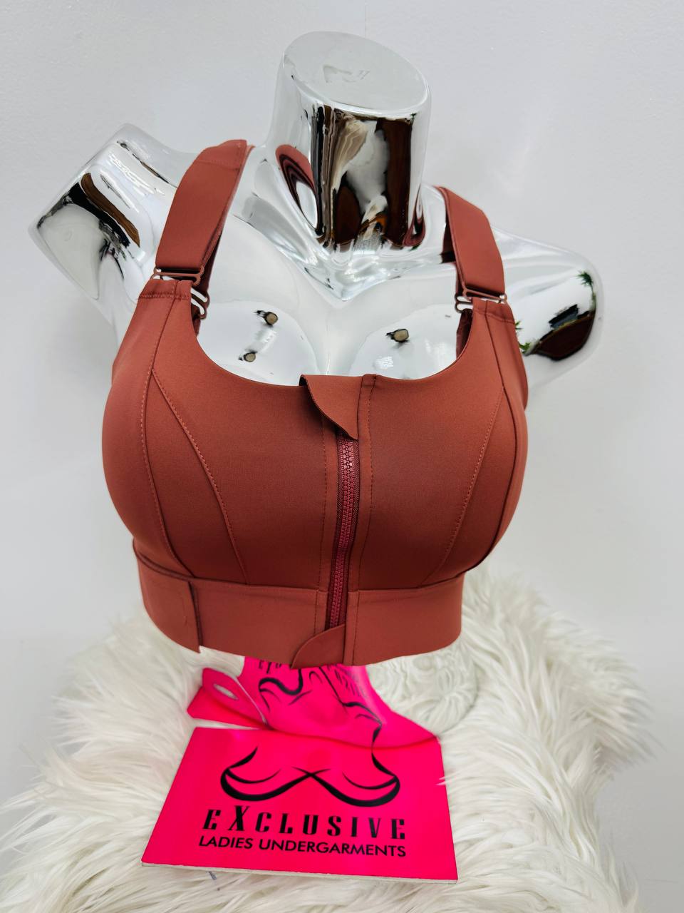Multifunctional Heavy Front Zipper Sports Bra Comfortable Compression Fit Gym Athletic Support