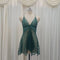 Flowing Hemline: The sheer skirt gently cascades from the bust, draping beautifully over the body in a flattering A-line silhouette with a playful, scalloped handkerchief hem.